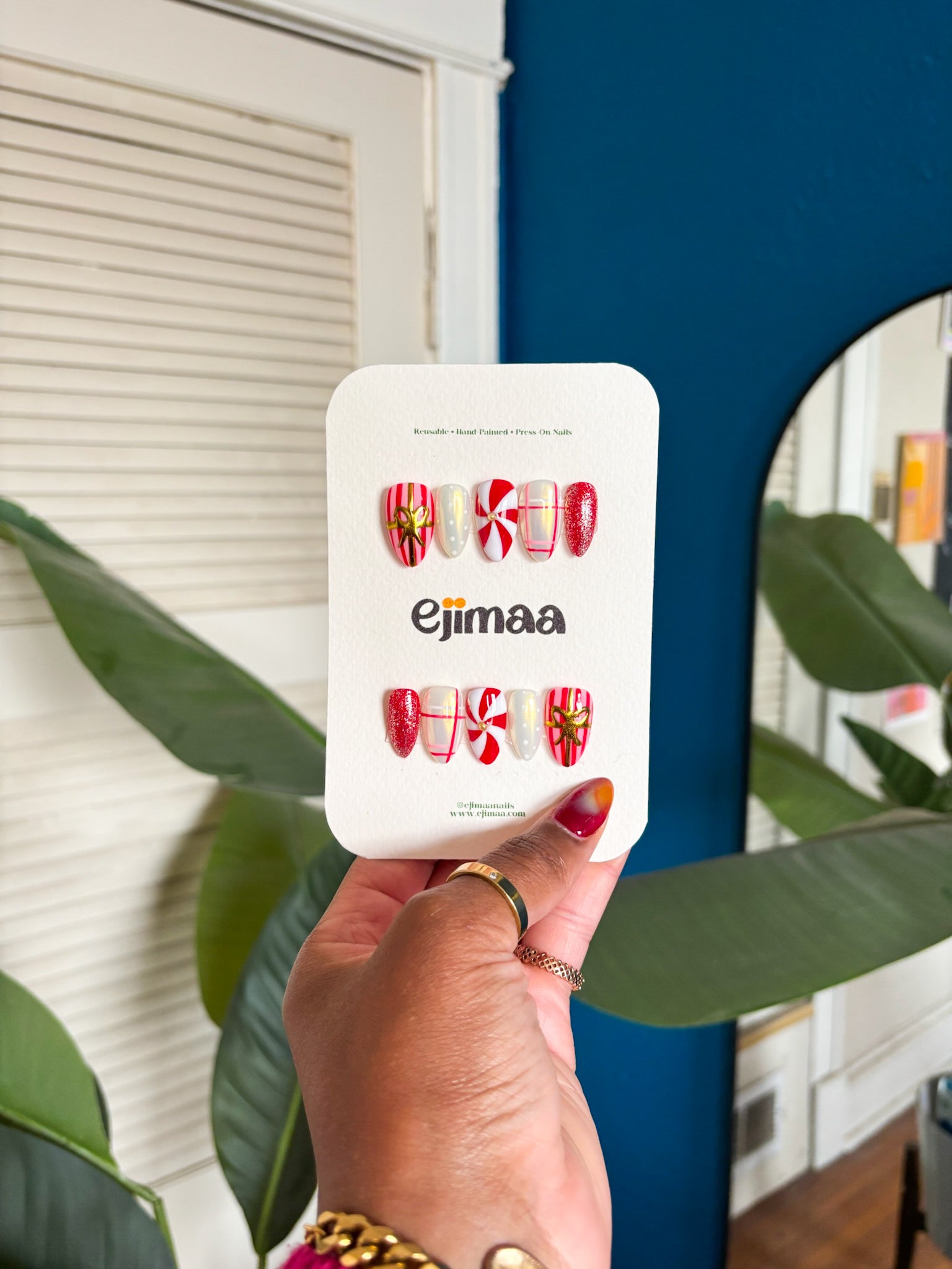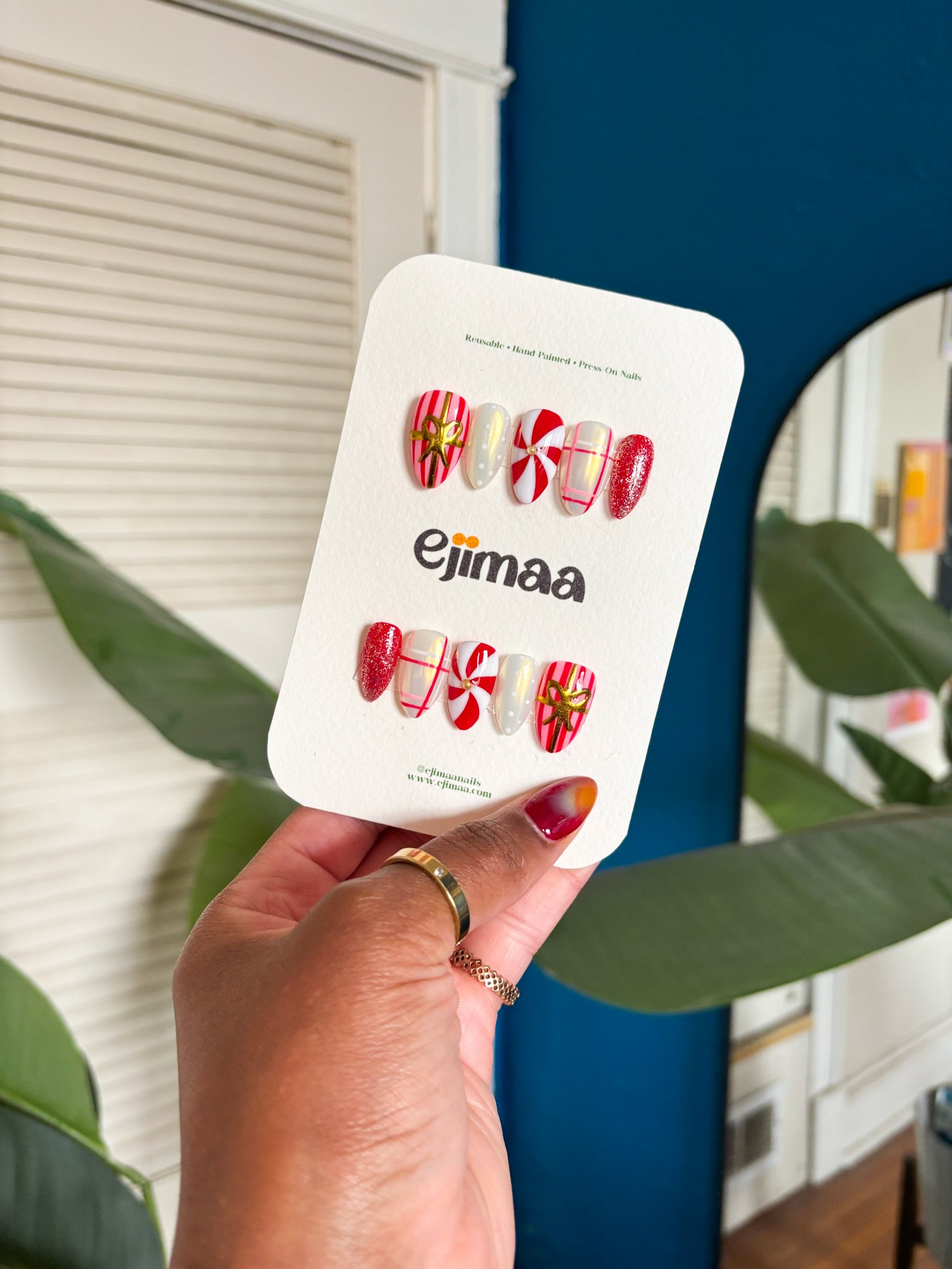 Designs: Gold bow accent, Peppermint art, Plaid, Red + pearly white mix