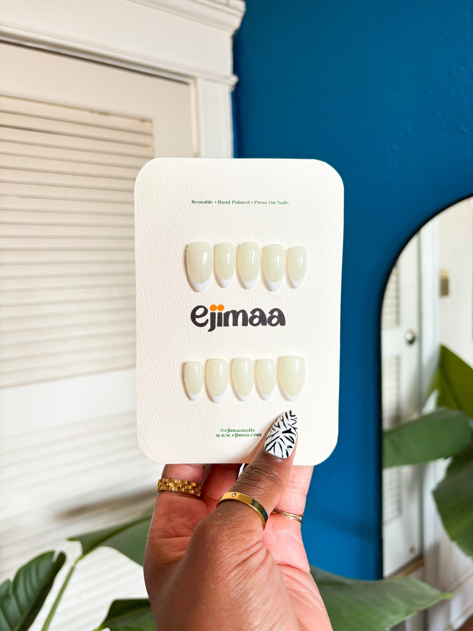 A simple everyday wear set! This set features a milky white base coat and a white French.